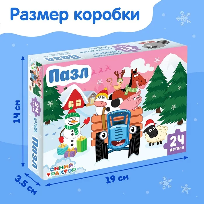 Пазл «Синий трактор: Украшаем ёлочку», 24 элемента, большая коробка — Характеристики