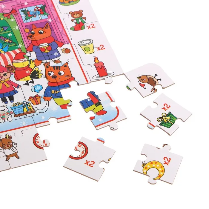 Пазл с новогодним сюжетом — то, что нужно для полезного и интересного досуга! Такой подарок поможет ребёнку скрасить ожидание Нового года, а также потренировать мелкую моторику, внимательность, логическое мышление и память.