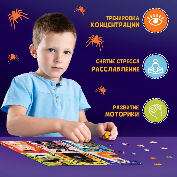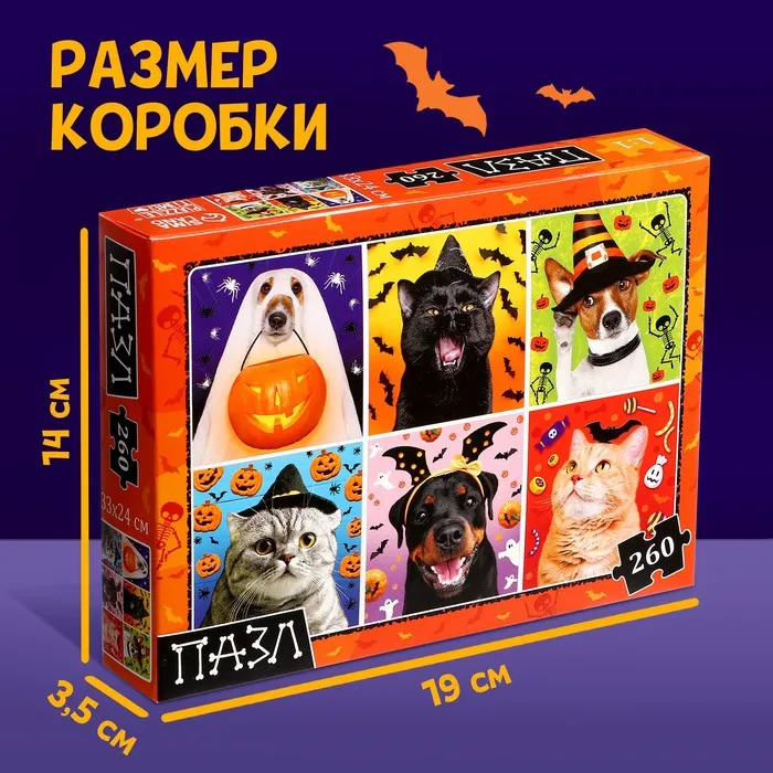 Пазл «Страшно забавные животные» с хэллоуинским сюжетом — то, что нужно для полезного и увлекательного досуга в канун Дня Всех Святых! Такой презент станет приятным дополнением к основному подарку и заинтересует малыша необычным сюжетом.