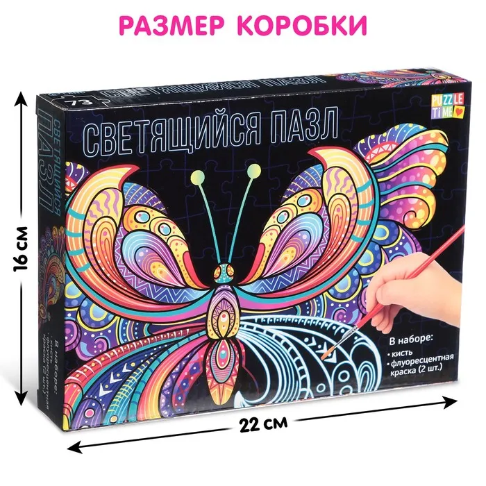 Пазл светящийся «Бабочка», флуоресцентные краски, 73 детали — Характеристики