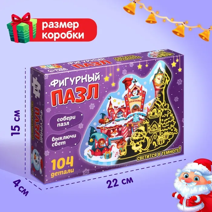 Пазл светящийся «Дарим новогодние подарки», 104 детали — Характеристики