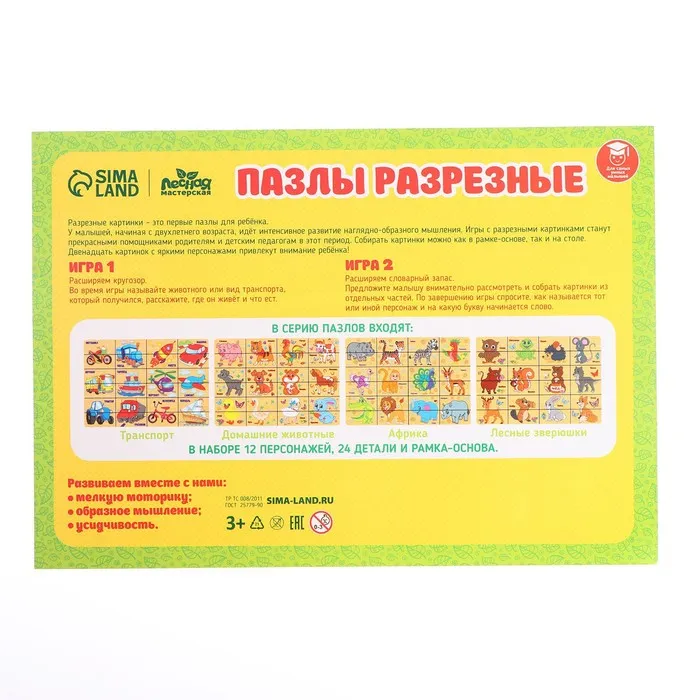 - Пазлы и основа выполнены из экологичного материала — дерева, покрыты безопасными красками.