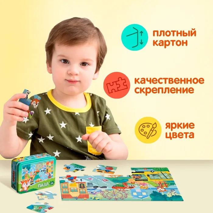 Пазл в металлической коробке «Уютный город», 24 детали — Характеристики