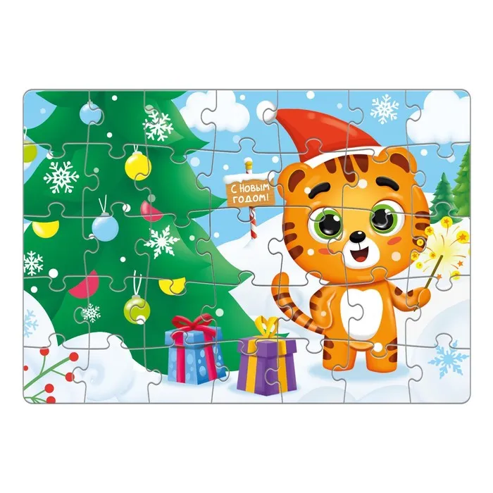 Пазл в новогодней упаковке «Тигрёнок» – то, что нужно для полезного и интересного досуга! Такой подарок поможет ребёнку скрасить ожидание Нового года, а также потренировать мелкую моторику, внимательность, логическое мышление и память.
