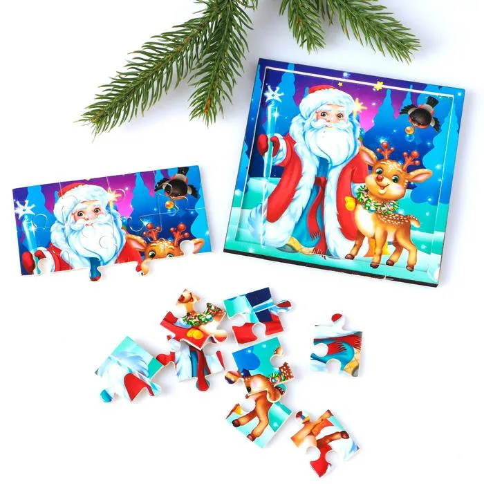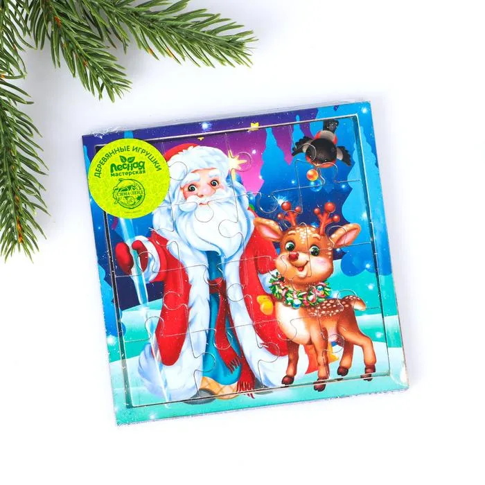 Сборка деревянного пазла способствует развитию мелкой моторики и координации движений. Ребенок учится находить правильное место для каждого элемента, тренируя логическое мышление и терпение. Тематика Деда Мороза и новогодних праздников добавляет игре особую атмосферу, которая увлечет малыша и подготовит его к предстоящим праздникам.