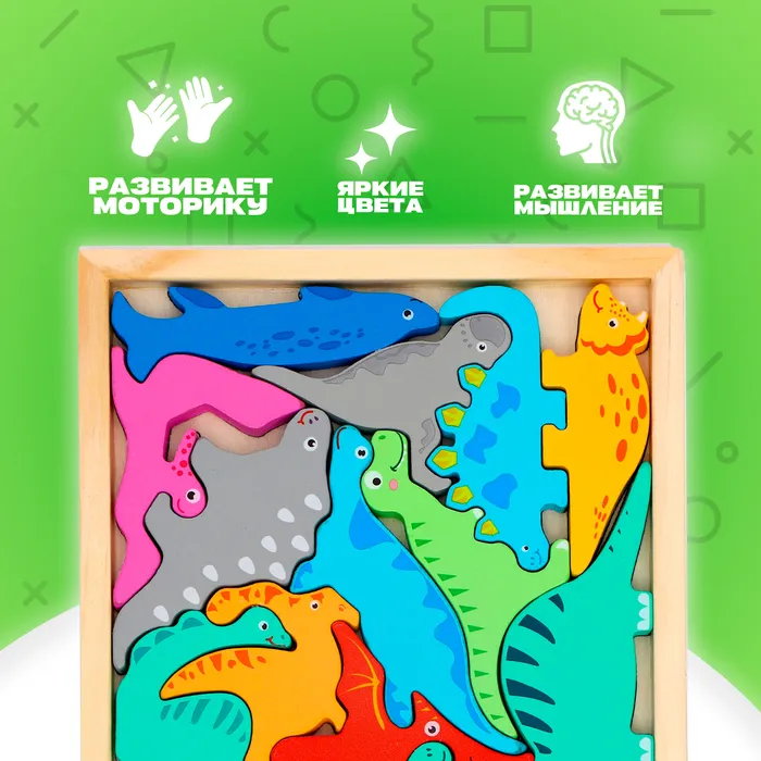Развивающий пазл в рамке «Динозавры» — это увлекательная и обучающая игрушка для детей от 3 лет. С его помощью дети могут развивать координацию и моторику через забавную и познавательную игру.