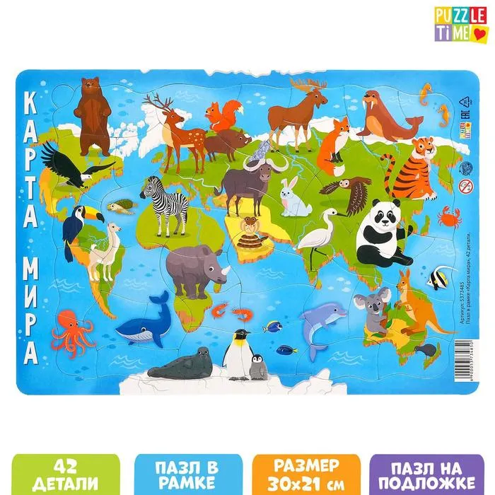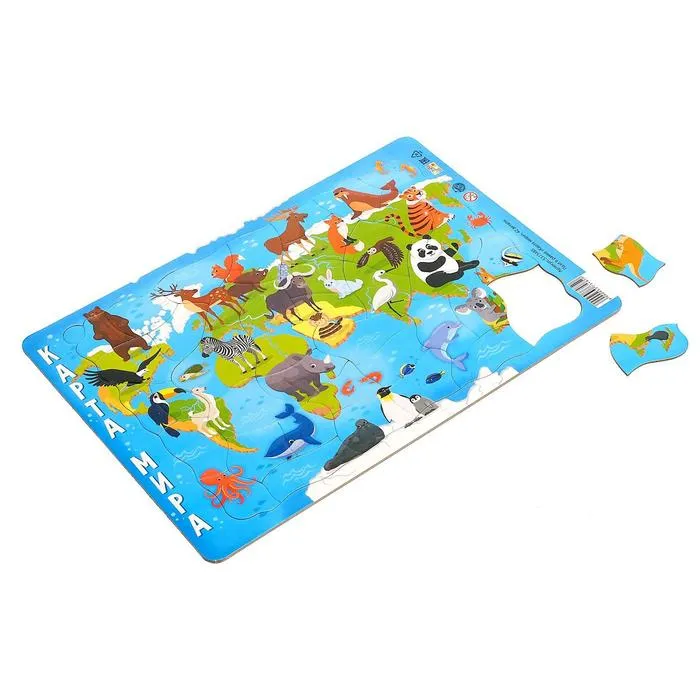 Пазл в рамке «Карта мира», 42 детали — Характеристики