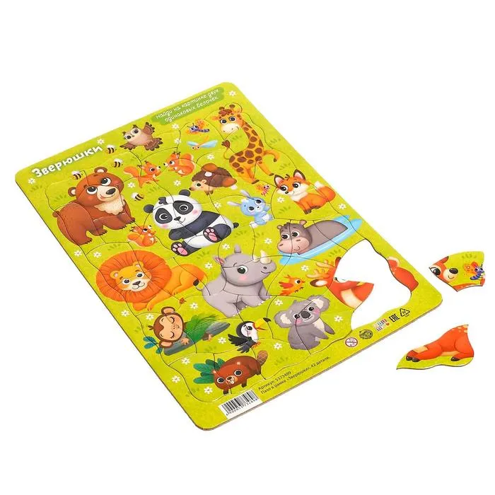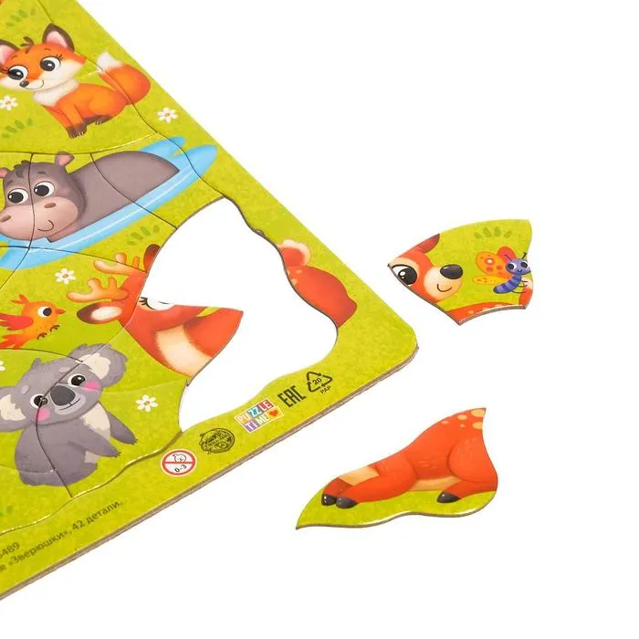 Пазл в рамке «Зверюшки», на подложке, 42 детали — Характеристики