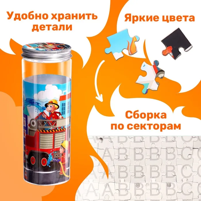 Пазл в тубусе «Пожарные», 96 деталей — Характеристики