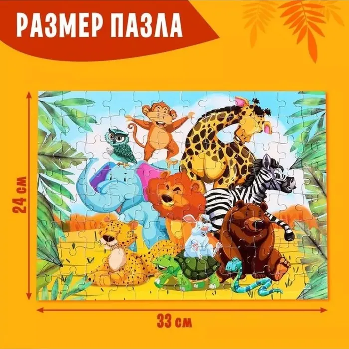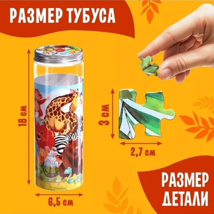 Пазл в тубусе «Зверята джунглей», 96 деталей — Характеристики