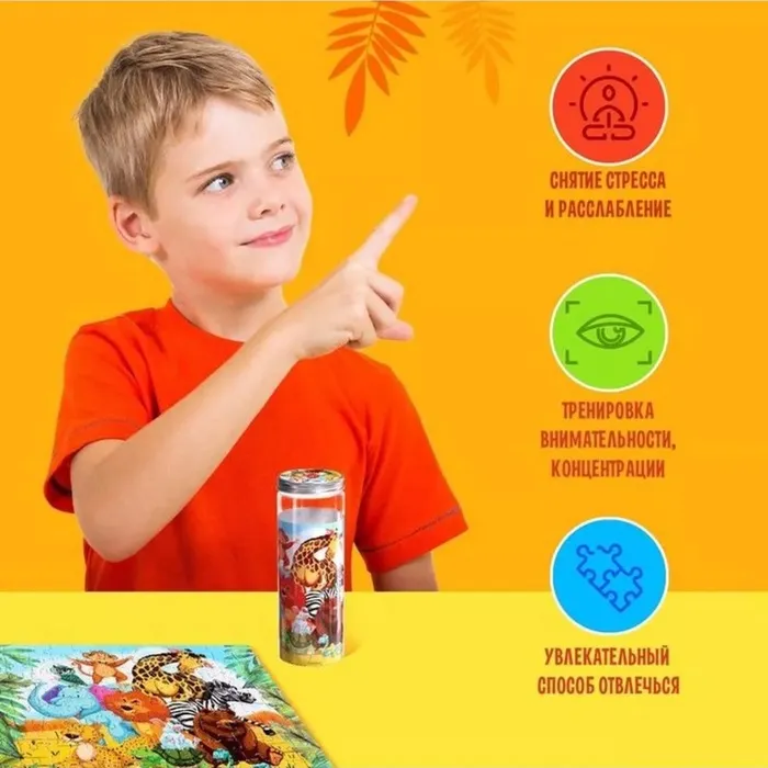 Пазл в тубусе «Зверята джунглей» — это занимательная развивающая игра, которая стимулирует познавательную активность и помогает упорядочить мысли.