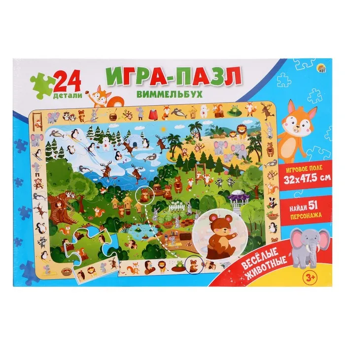 Пазл виммельбух «Весёлые животные», 24 элемента — Характеристики