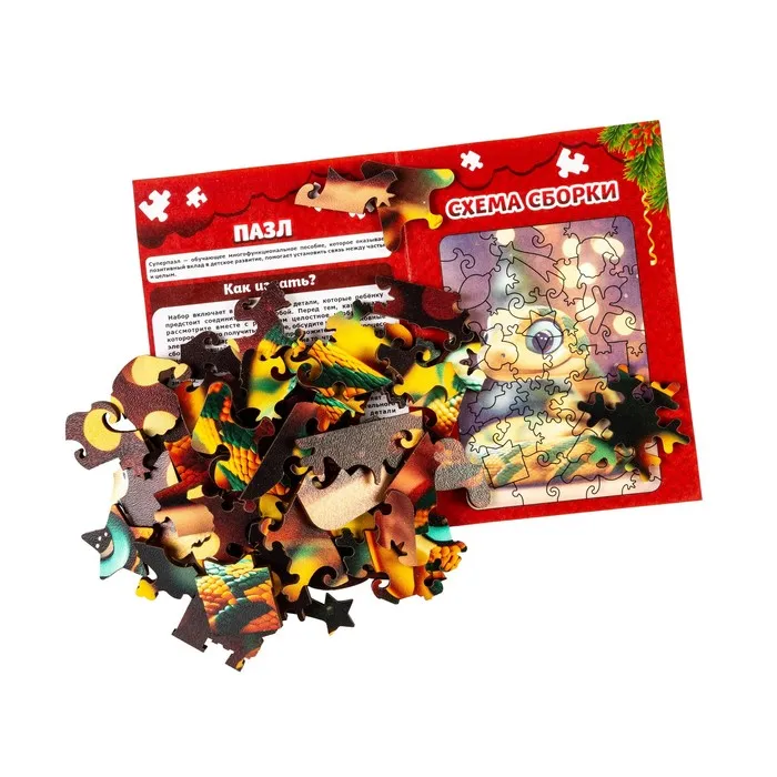 - Высокое качество материалов — детали пазла изготовлены из плотного картона, что обеспечивает долгий срок службы.