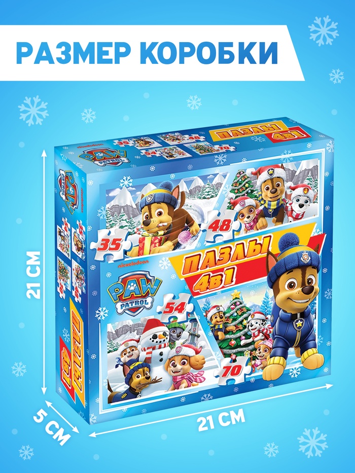 Пазлы 4 в 1, 35, 48, 54, 70 деталей, подарочный набор, Щенячий патруль — Характеристики