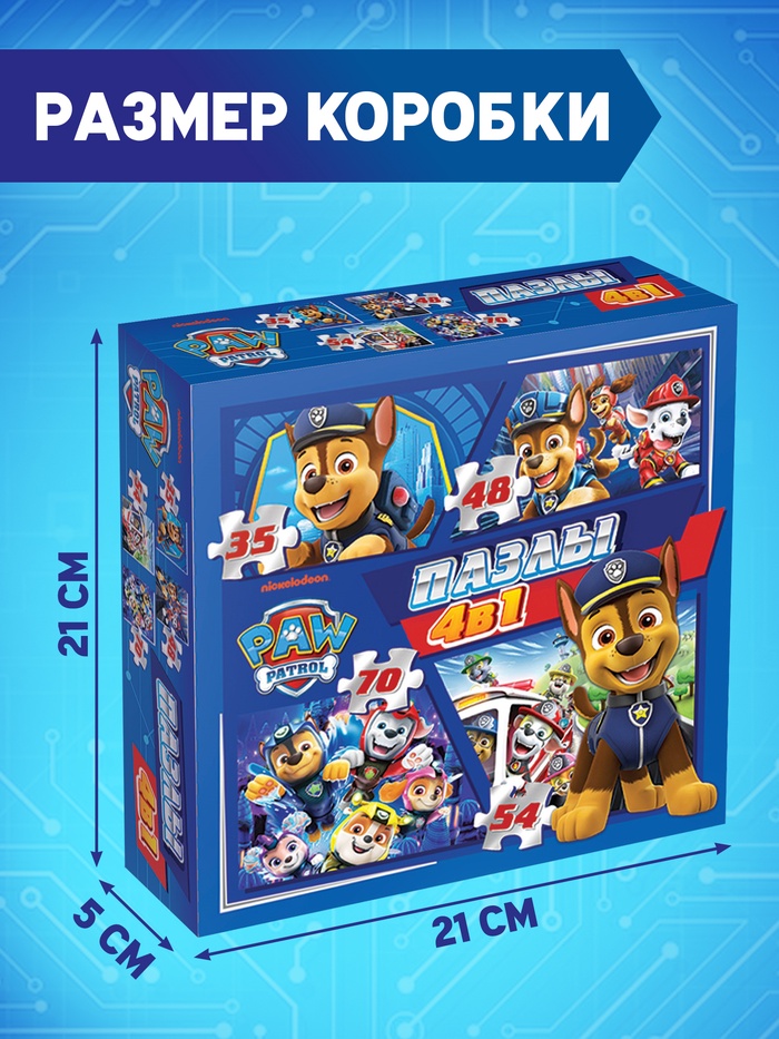 Пазлы 4 в 1, 35, 48, 54, 70 деталей, Щенячий патруль — Характеристики