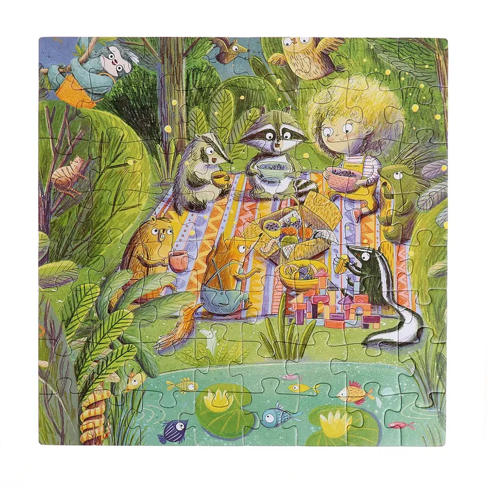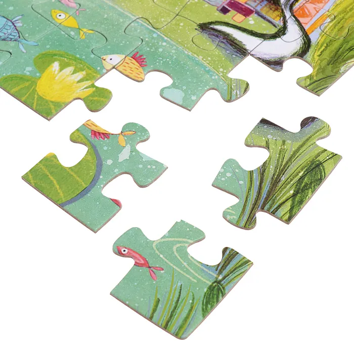- Собрав все пазлы, ребёнок сможет объединить их в одну панорамную картину с сюжетом.