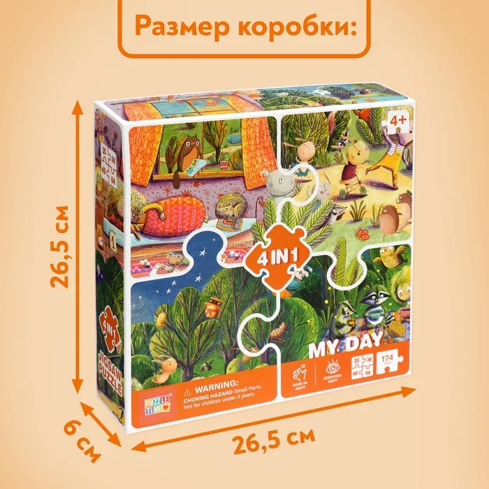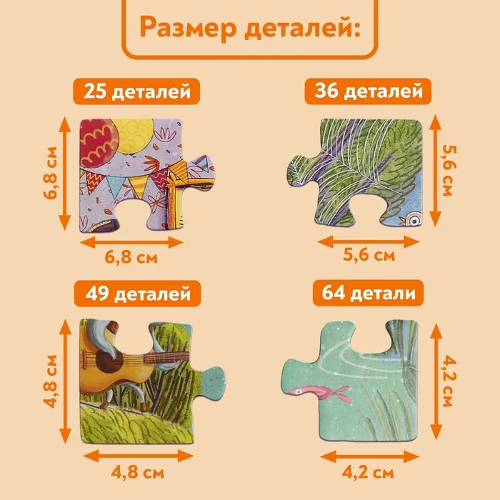 Пазлы 4 в 1 «Чудесный день», 25, 36, 49, 64 элемента — Характеристики