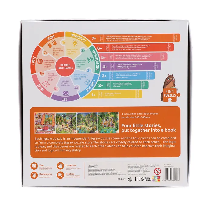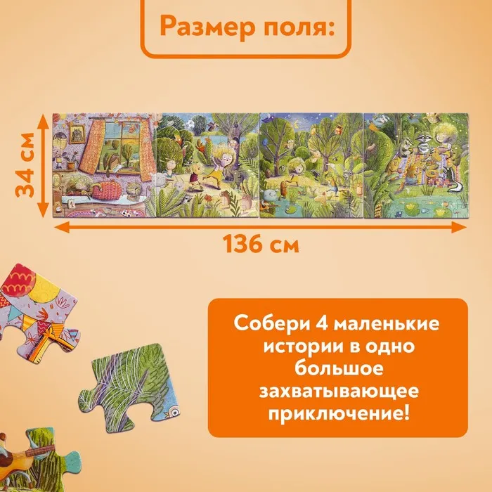 Ребёнок соберёт 4 маленькие истории, а затем объединит их в одно большое захватывающее приключение!