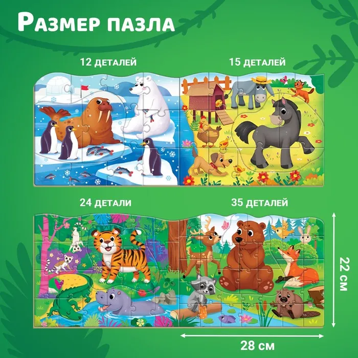 Пазлы 4 в 1 «Такие разные животные», 86 деталей — Характеристики