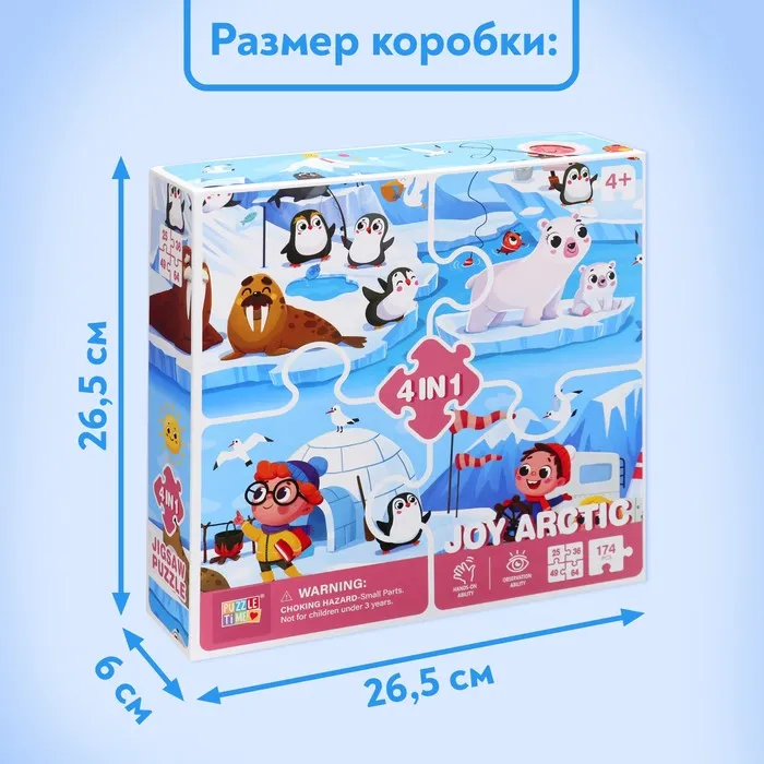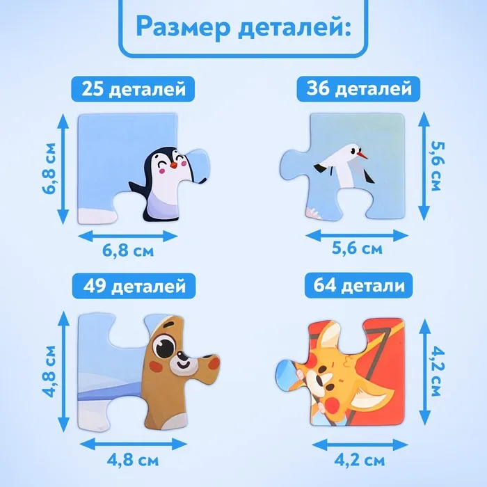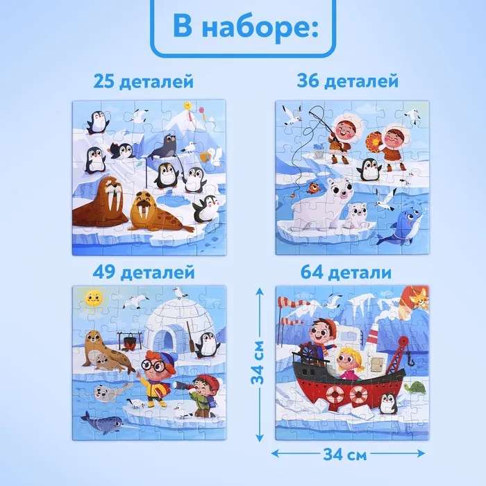 Пазлы 4 в 1 «Весёлая Арктика», 25, 36, 49, 64 элемента — Характеристики