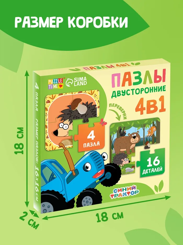 Пазлы 4в1 двусторонние «Друзья Синего трактора», 16 элементов — Характеристики