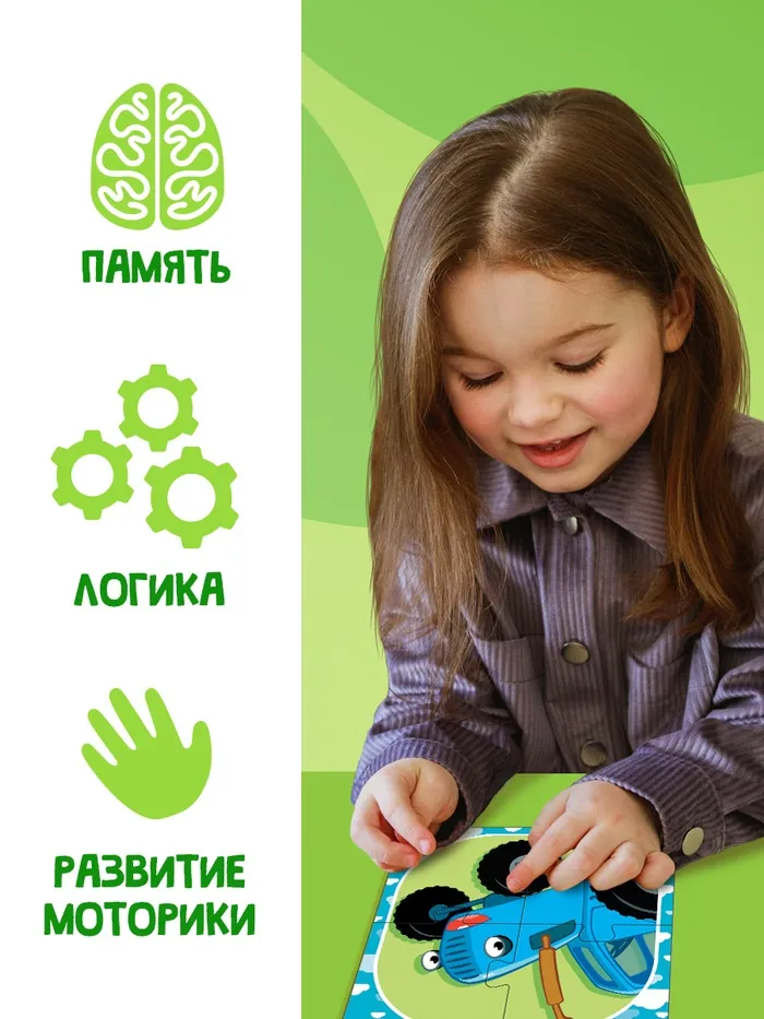 Сборка пазлов помогает детям развивать логическое мышление, учит различать цвета и находить связь между частями и целым. Игра тренирует усидчивость, улучшает мелкую моторику и кратковременную память, что важно для гармоничного развития ребёнка.
