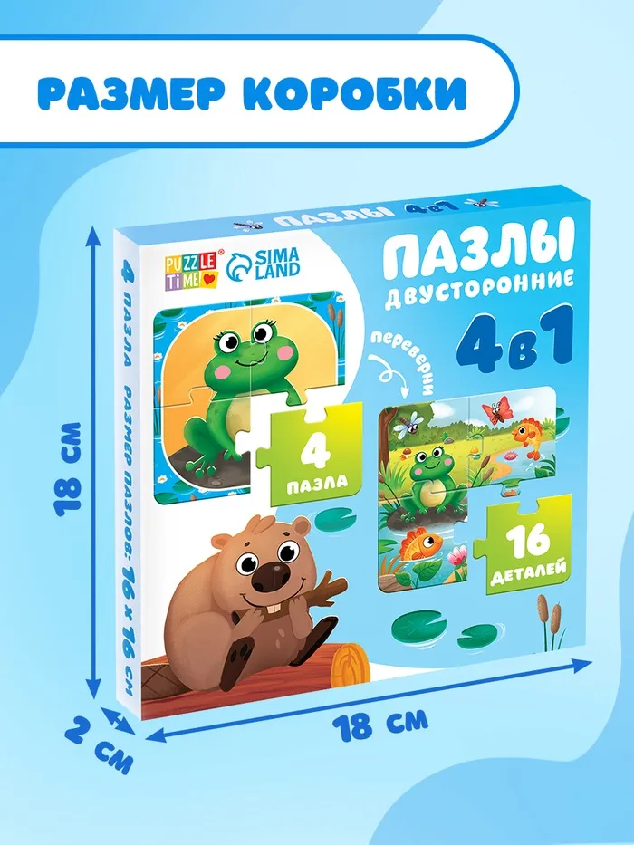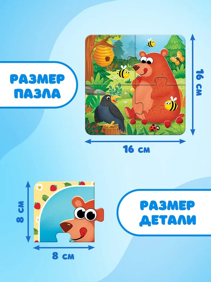Пазлы 4в1 двусторонние «Лесные животные», 16 элементов — Характеристики