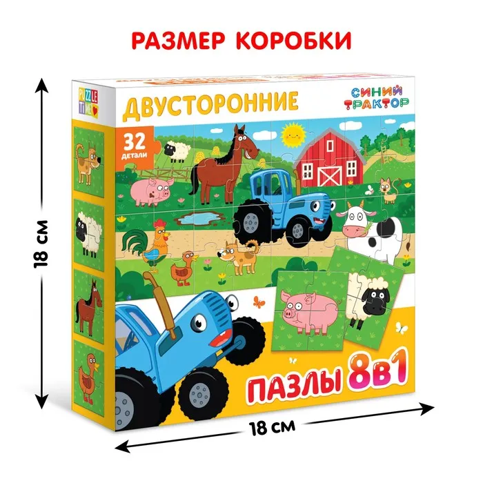 Сборка пазлов — это отличный способ провести время с пользой. Ребёнок учится концентрироваться, развивает пространственное мышление и улучшает координацию движений. Яркие изображения с героями «Синего трактора» делают процесс игры ещё увлекательнее, а возможность собрать 8 разных картинок обеспечивает долгие часы интересного досуга.