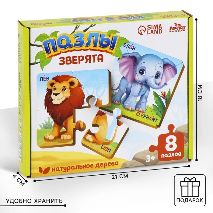 Деревянные пазлы — это увлекательная и долговечная головоломка. Крупные детали легко собирать, поэтому они подходят даже самым маленьким.