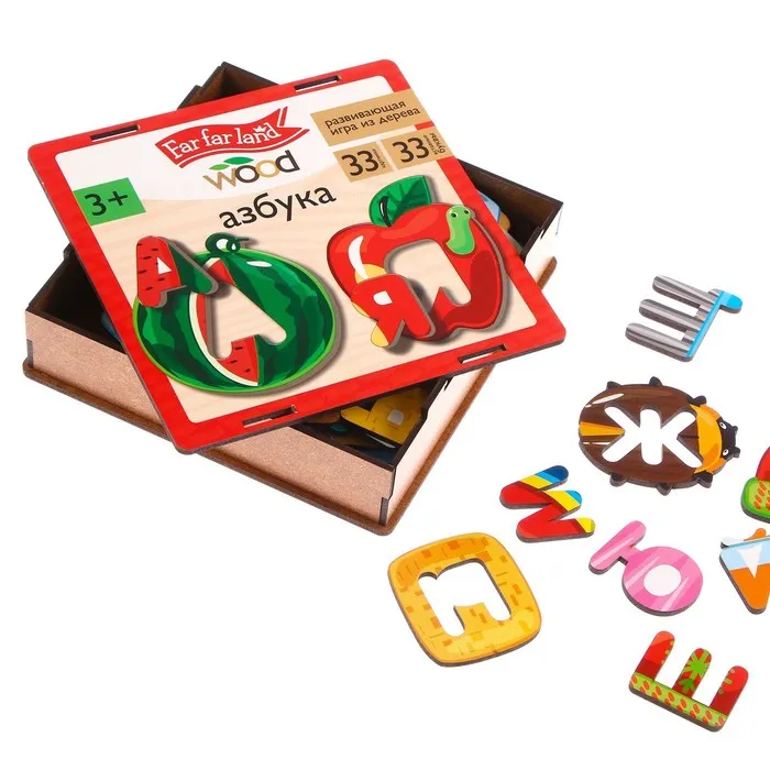 Деревянные пазлы «Азбука» — это набор для мальчиков и девочек от 3 лет, который помогает изучать буквы, слова и развивать важные навыки через игру. Идеально подходит для малышей, которые делают первые шаги в обучении.