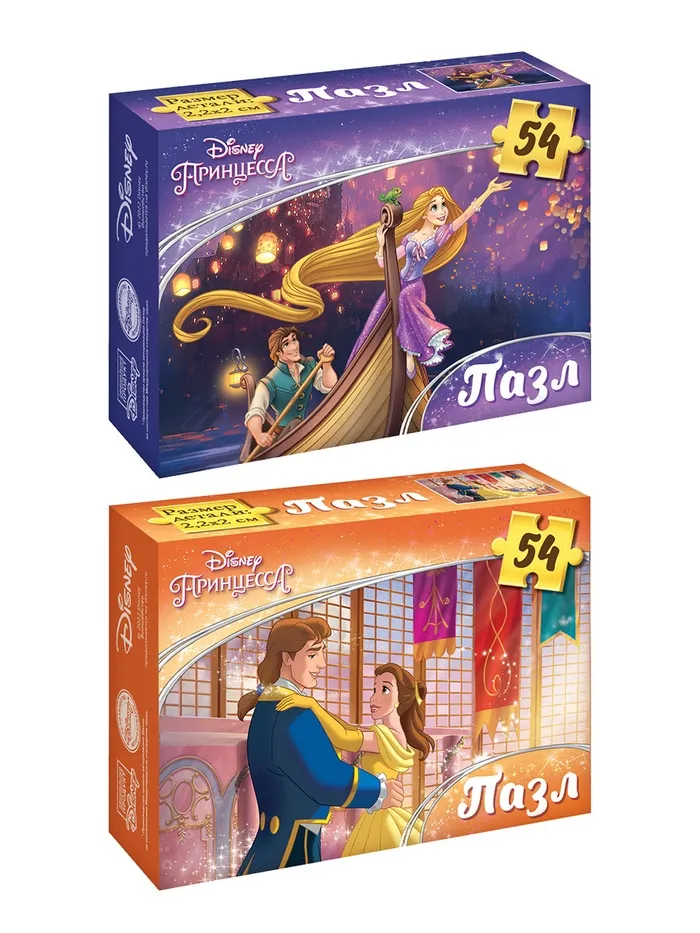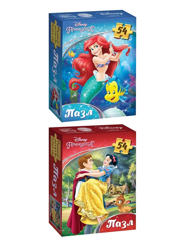 Пазлы «Принцессы» — это набор из 10 классических картонных картинок для девочек от 3 лет. Каждая головоломка состоит из 54 деталей и собирается в яркое изображение любимых героинь мультфильмов Дисней. Тематика принцесс, замков и сказочных приключений создаёт атмосферу волшебства и вдохновляет на творческую игру.