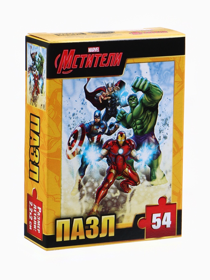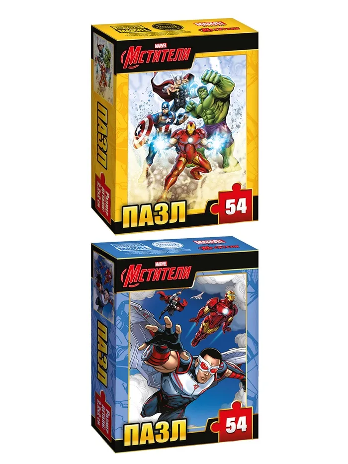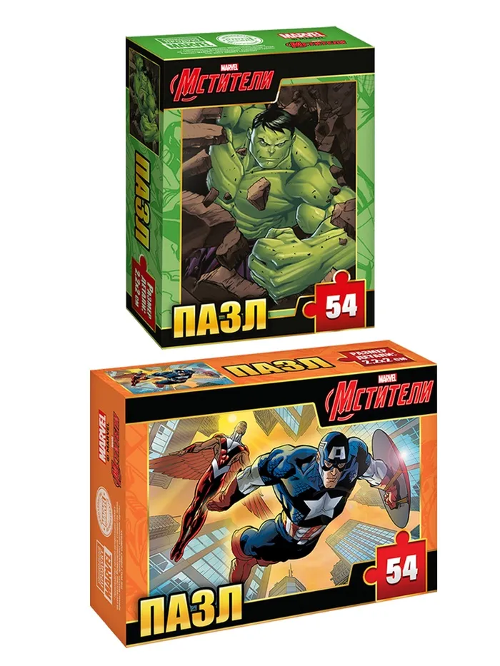 Пазлы «Мстители» — это набор из 10 классических картонных картинок для мальчиков от 3 лет. Каждая головоломка состоит из 54 деталей и собирается в яркое изображение любимых супергероев вселенной Марвел. Тематика супергероев, персонажей и героических приключений создаёт атмосферу волшебства и вдохновляет на творческую игру.