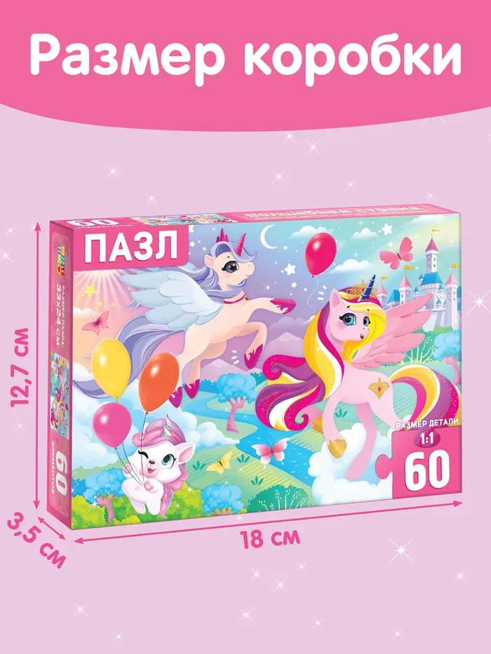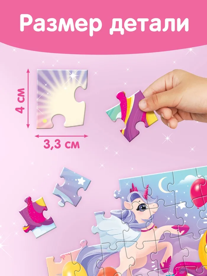 Собрав все детали в одно целое, вы получите красочную картинку размером 35 × 27 см, а после этого можете снова убрать пазлы в компактную коробочку.