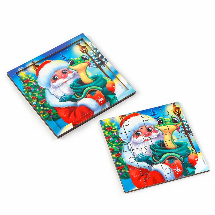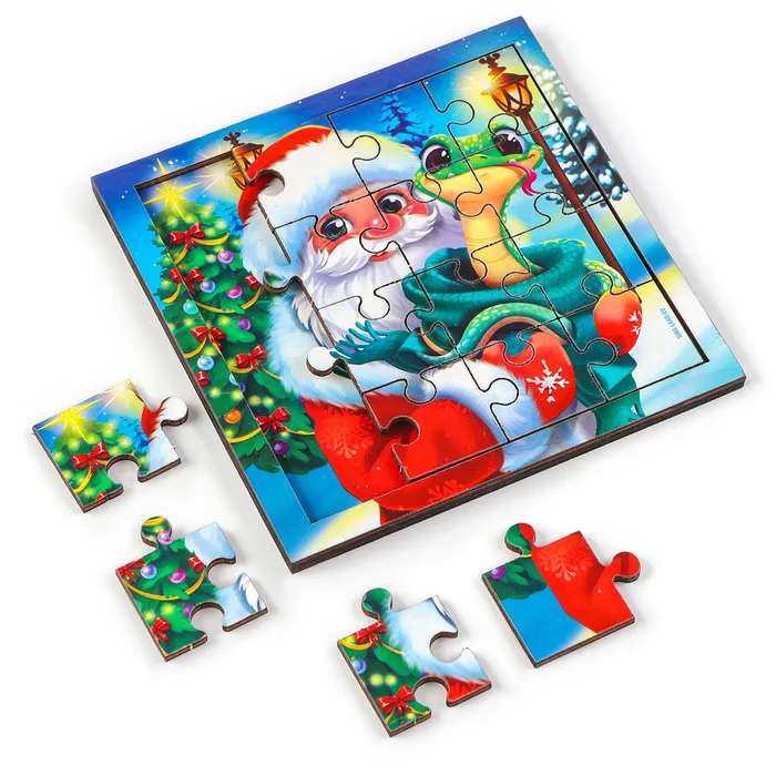 Пазлы для детей деревянные «Новый год! Дед Мороз и змея», 16 элементов, символ года 2025 — Характеристики