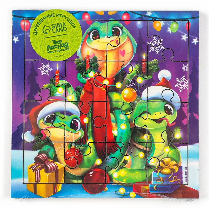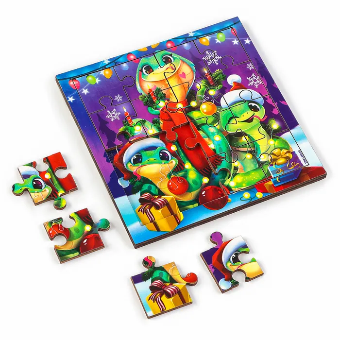 Пазлы для детей деревянные «Новый год! Змея», 16 элементов, символ 2025 — Характеристики