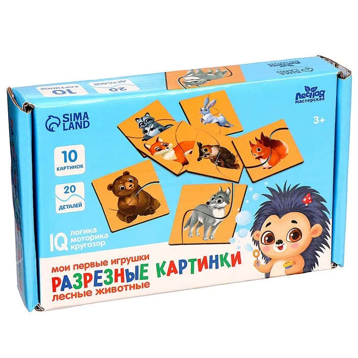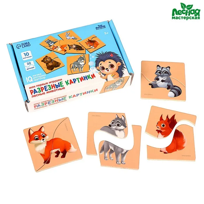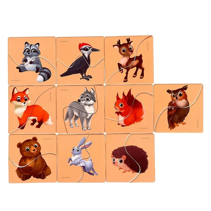 Пазлы для детей «Картинки половинки. Лесные животные», 10 картинок, 20 деталей — Характеристики