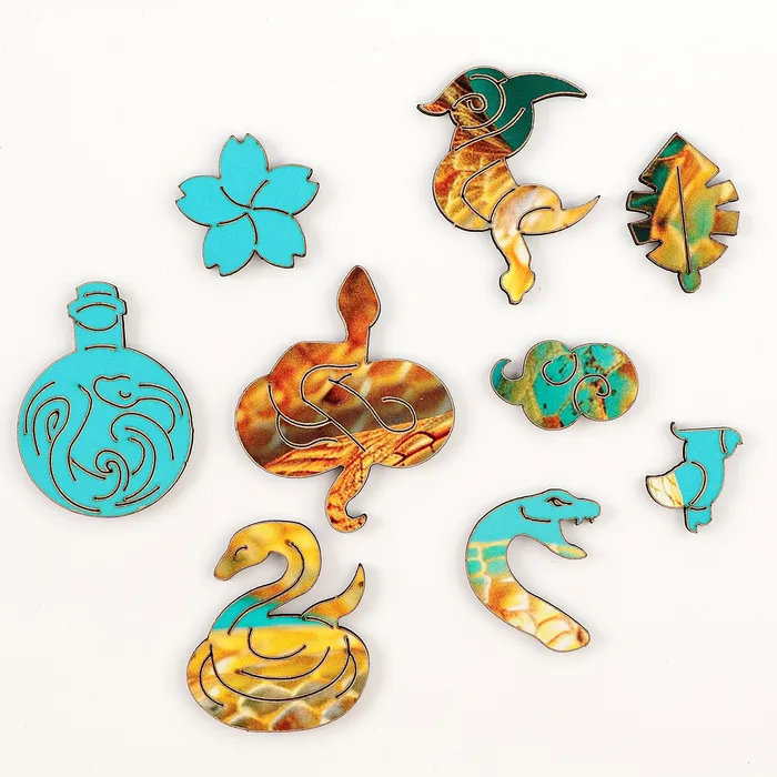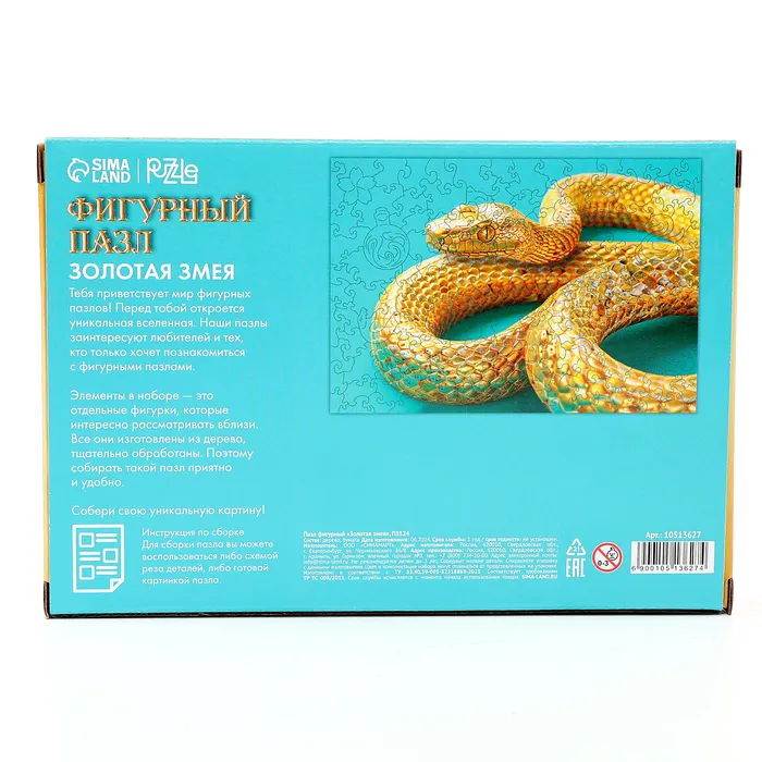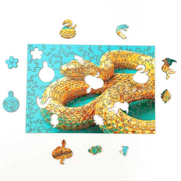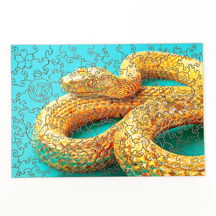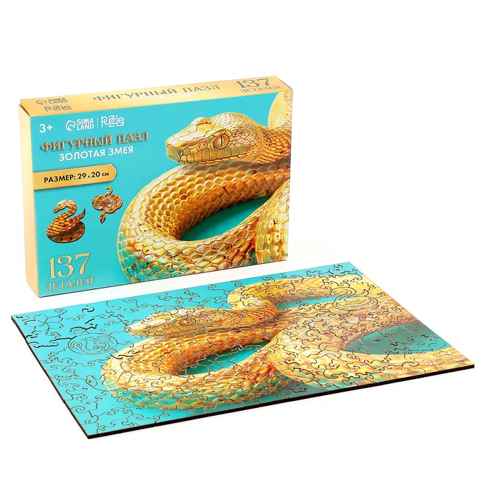 Пазлы фигурные деревянные на новый год «Золотая змея», 137 элементов, символ 2025 — Характеристики