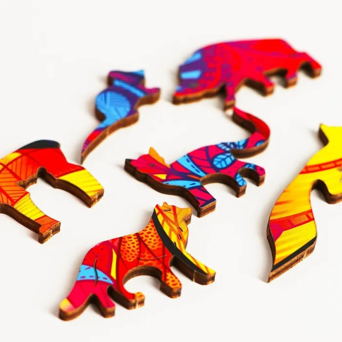 - Каждая деталь в наборе — это отдельная фигурка. Все они изготовлены из дерева, тщательно обработаны и не имеют заусенцев. Поэтому собирать такой пазл приятно и удобно.