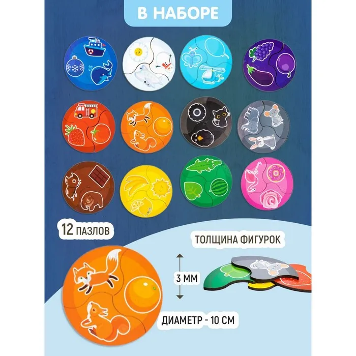 Пазлы из дерева «Мои первые пазлы. Цвета», 36 элементов — Характеристики