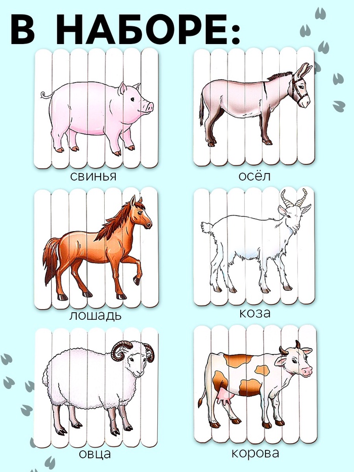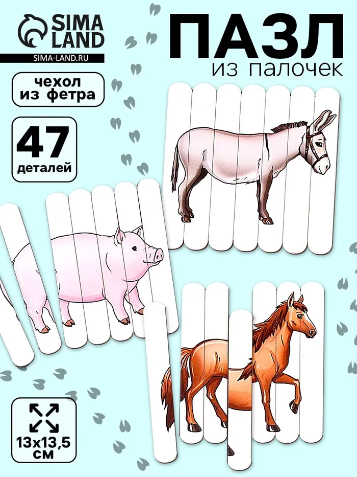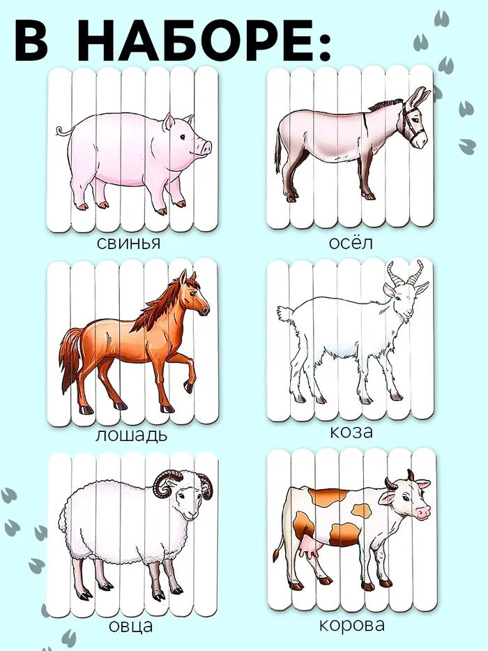 Пазлы из палочек «Ферма» — набор из 6 красочных головоломок, которые станут увлекательным и развивающим занятием для вашего ребёнка.