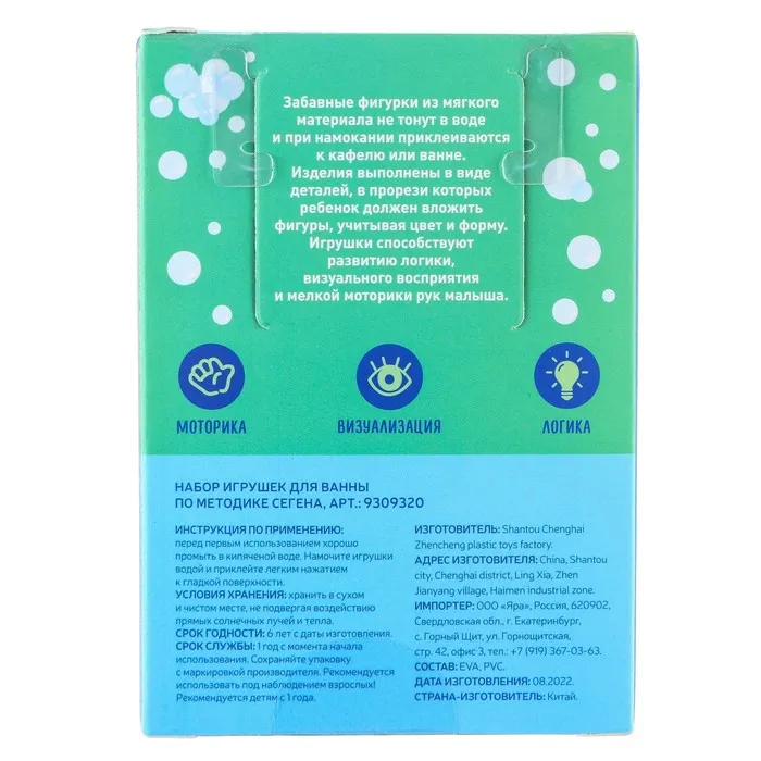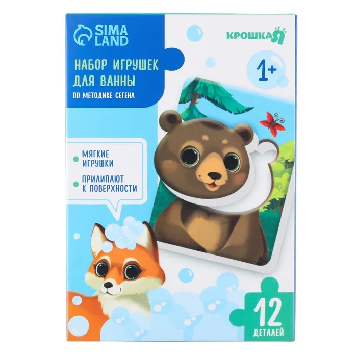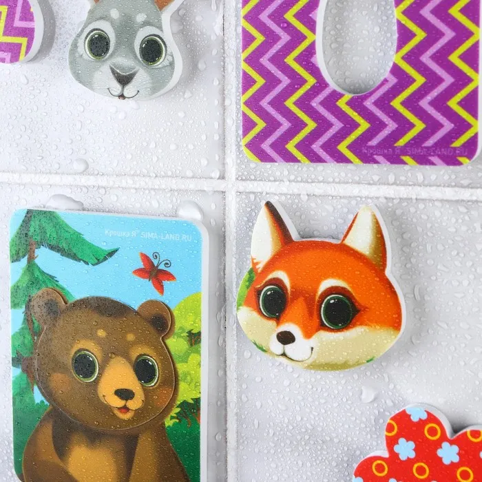- Игрушка изготовлена из мягкого и прочного материала EVA, который безопасен для детей. Детали приятны на ощупь, легко моются и прилипают к кафелю при намокании.
