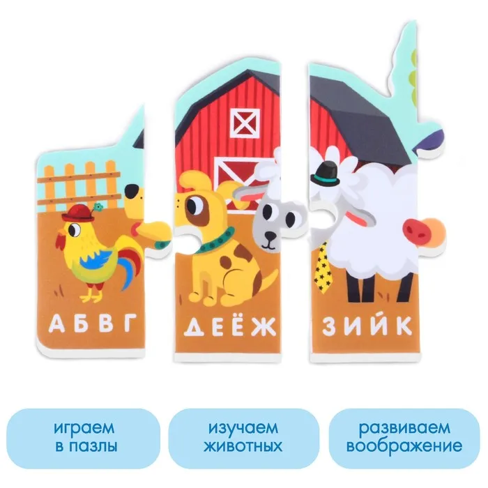 Пазлы мягкие для малышей Крошка Я «Алфавит: Ферма», 9 деталей, от 1 года — Характеристики