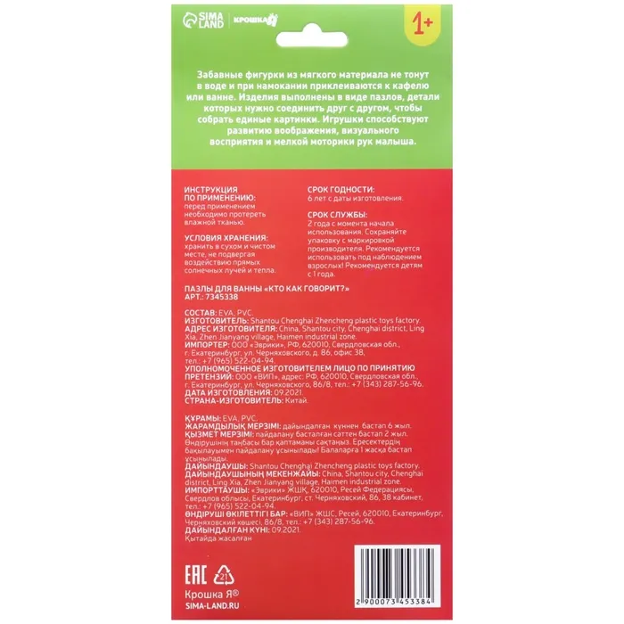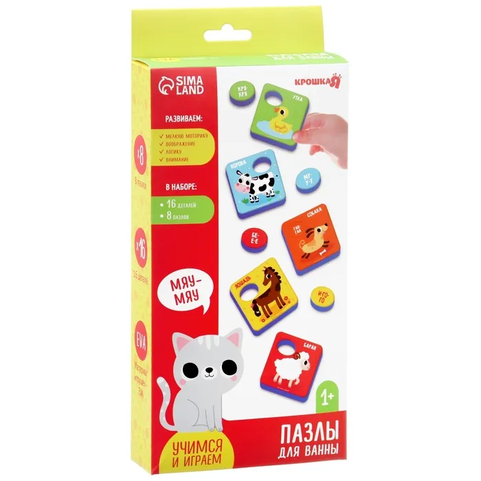Пазлы мягкие для малышей Крошка Я «Кто как говорит?», 8 шт., от 1 года — Характеристики