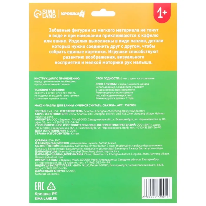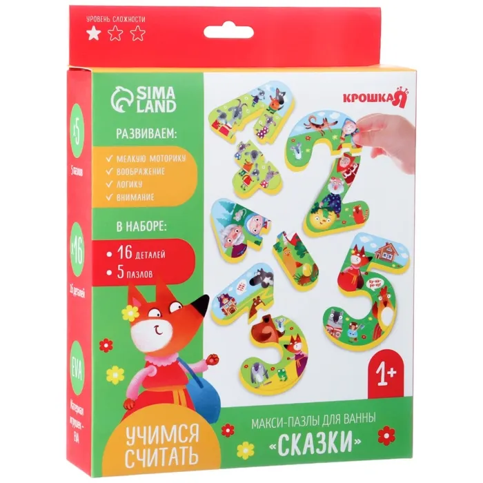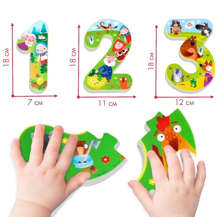 Пазлы мягкие для малышей Крошка Я «Учим цифры: Сказки», 5 пазлов, от 1 года — Характеристики
