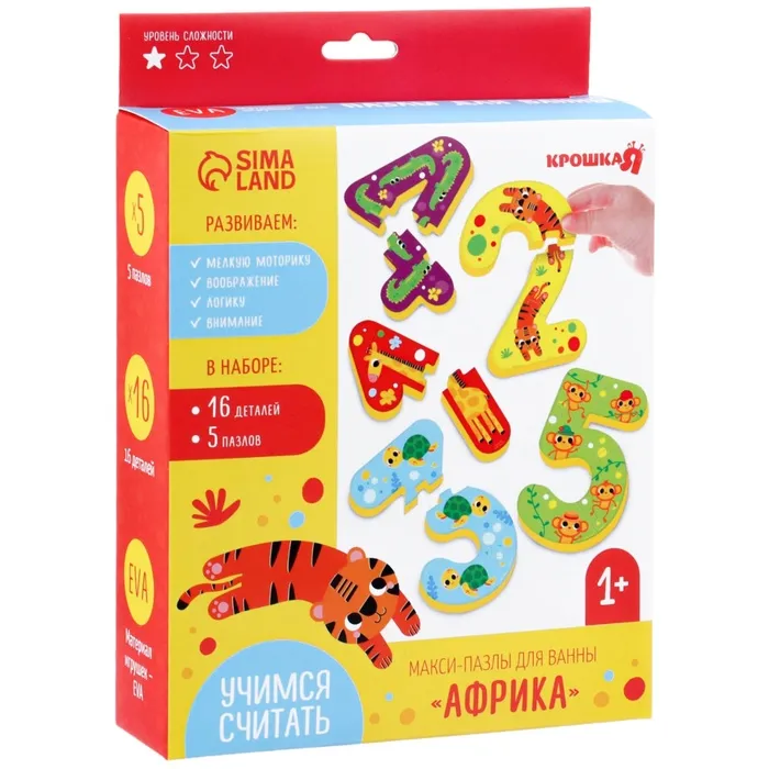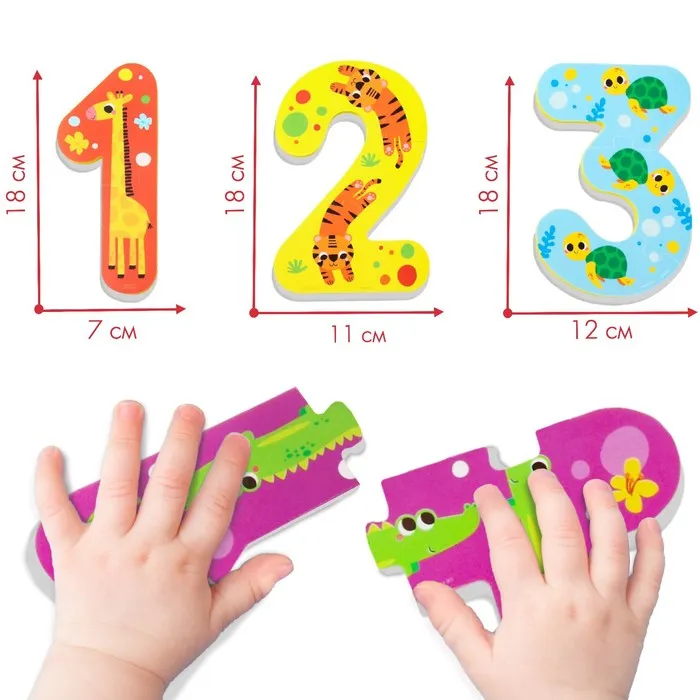 Пазлы мягкие для малышей Крошка Я «Учим цифры: Животные», 5 пазлов — Характеристики