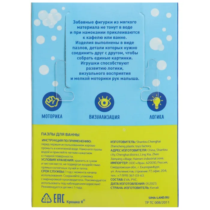 Забавные игрушки из мягкого материала не тонут в воде и при намокании приклеиваются к кафелю или ванне.