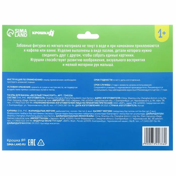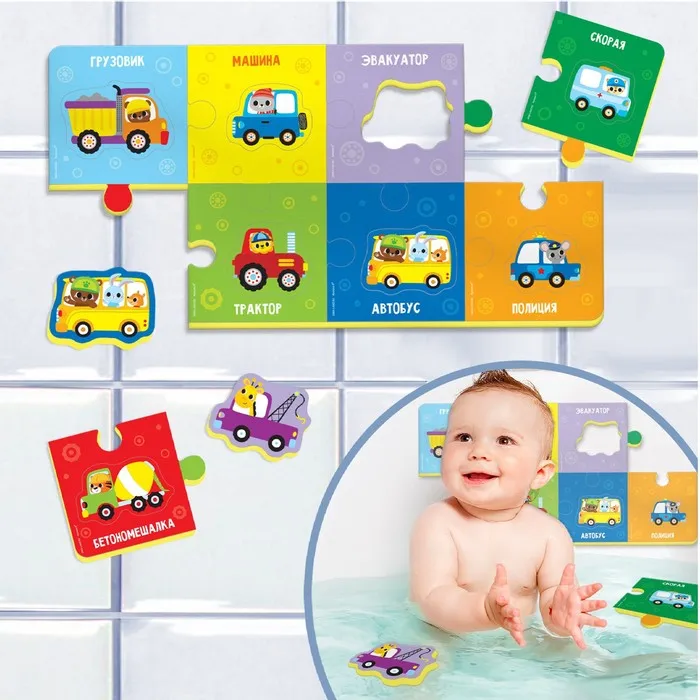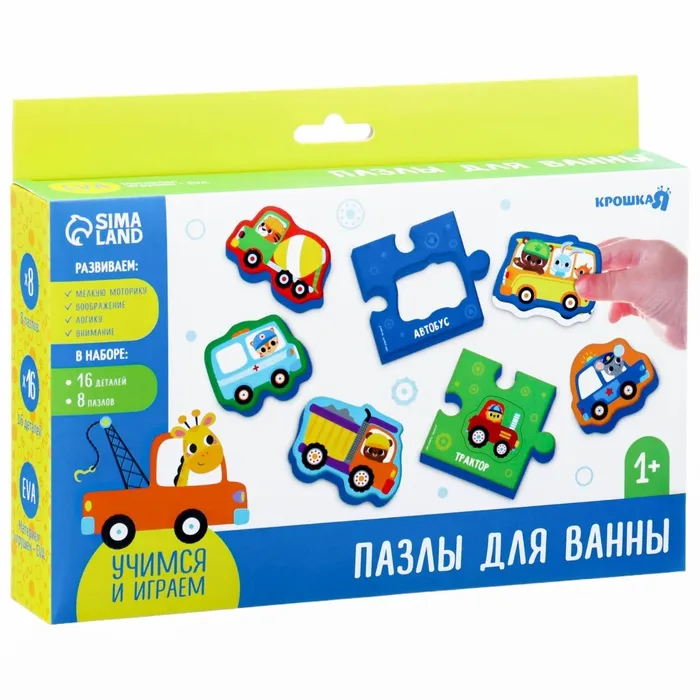 Пазлы мягкие для малышей Крошка Я «Веселый транспорт», 16 деталей, от 1 года — Характеристики