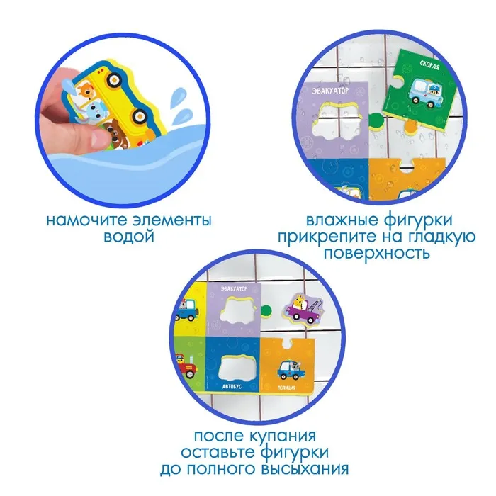 Забавные игрушки из мягкого материала не тонут в воде и при намокании приклеиваются к кафелю или ванне.