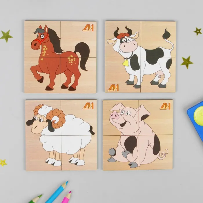 Пазлы мини «Домашние животные» Деревянные Игрушки — Характеристики