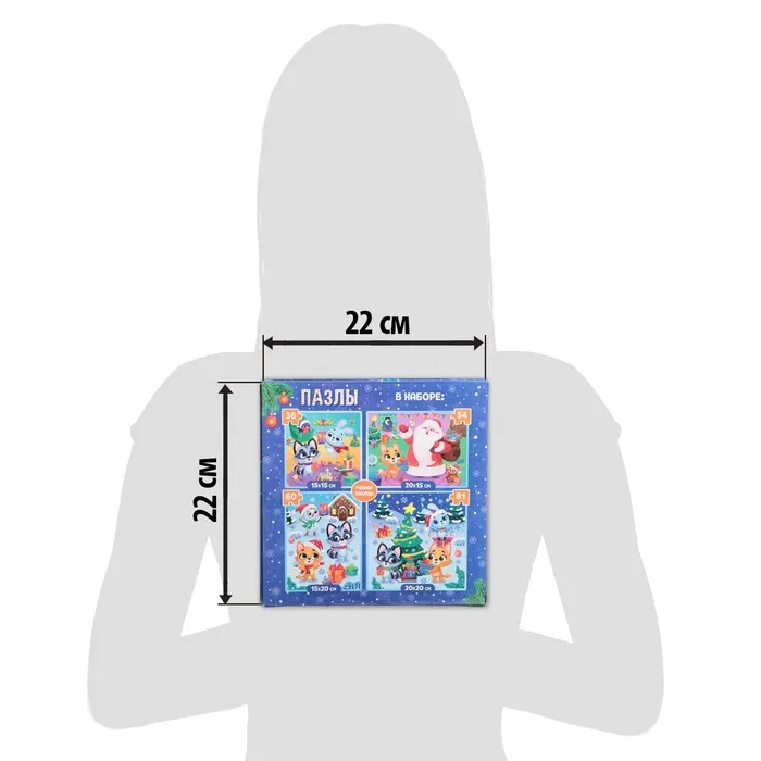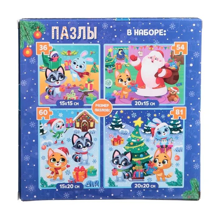 Пазлы набор 4 в 1 «Новый год с друзьями» — Характеристики